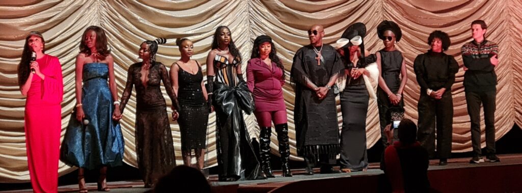 (Ganz links die Regisseurin, sehr stilvoll in roter Robe und Basecap.)